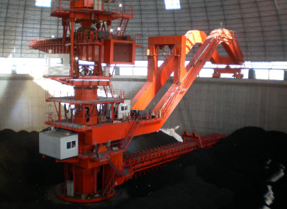 頂堆側(cè)取堆取料機(jī)采用定點(diǎn)堆料和分區(qū)分層側(cè)式刮板取料工藝,主要用于煤炭、礦山、電力、冶金等行業(yè)中堆取礦石、煤等以倉儲(chǔ)為主、無均化要求的散狀物料。